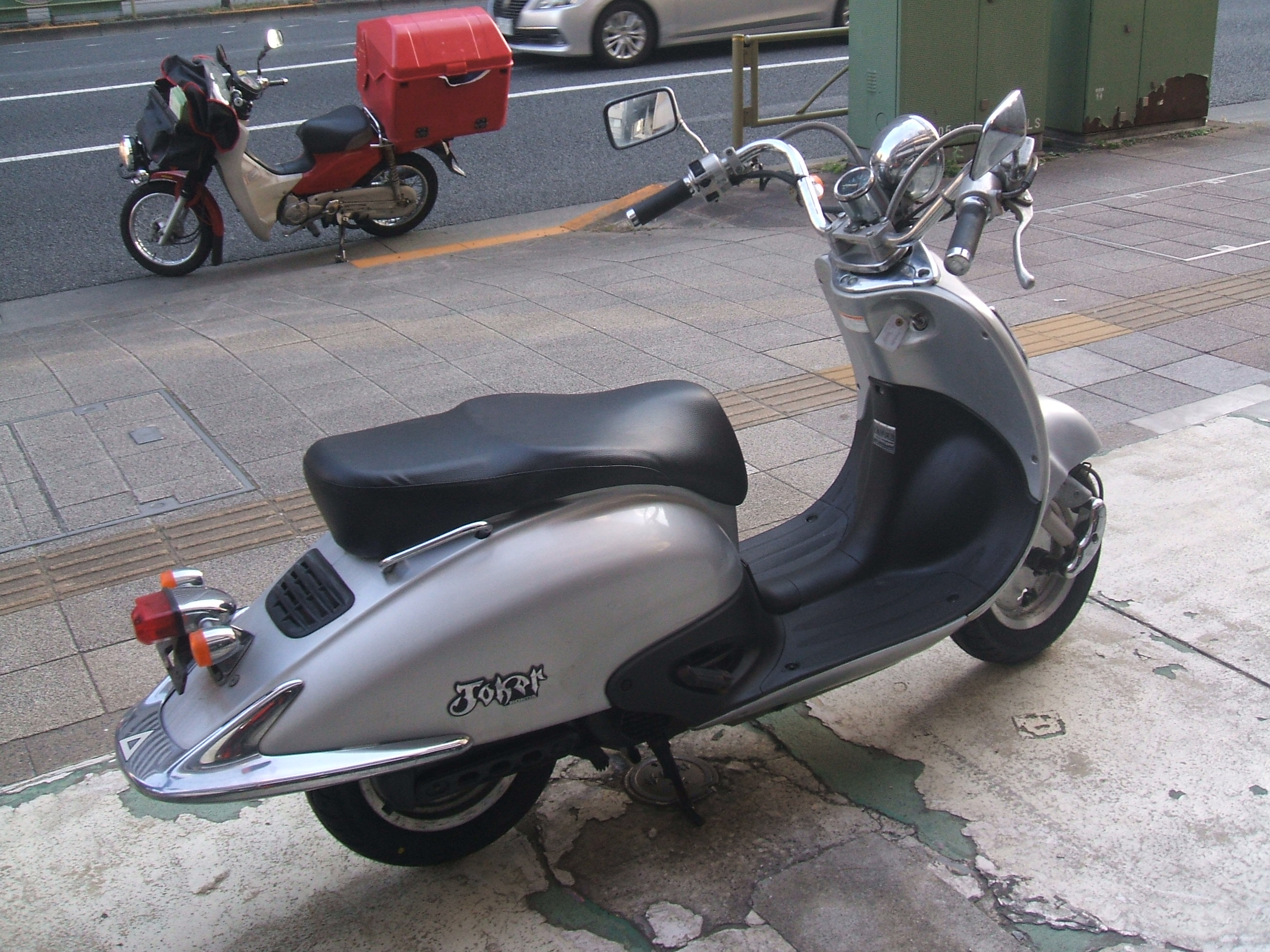 2サイクルアメリカンスクーターです。タイヤ前後、バッテリー交換済みです。
